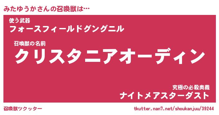 | ヒーロー風カッコイイあだ名 | 『スーパーミタユウカ』『銀牙騎士ミタ』 |