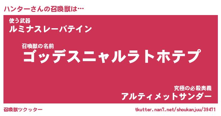 | ファンタジー風あだ名 | 『ハンフェル』『エターナルハンターー』 |