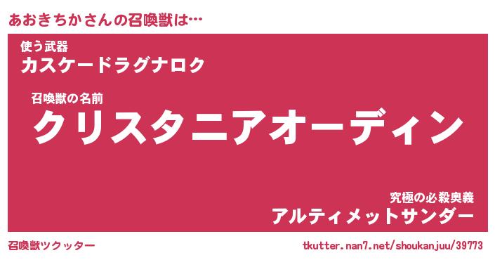 | ファンタジー風あだ名 | 『アオフェル』『エターナルアオキチカー』 |