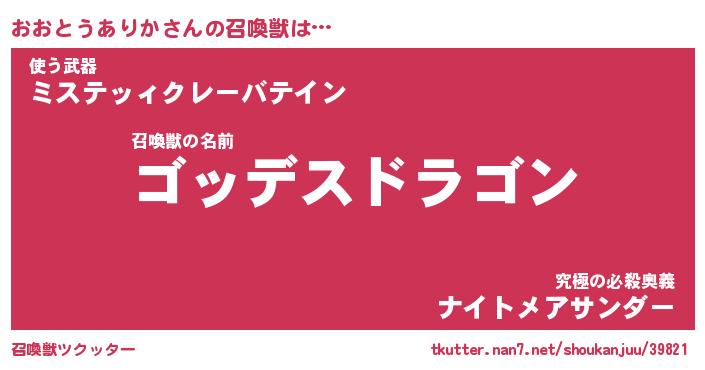 | 伝説のあだ名 | 『不死鳥の竜騎士おおとうありか』 |