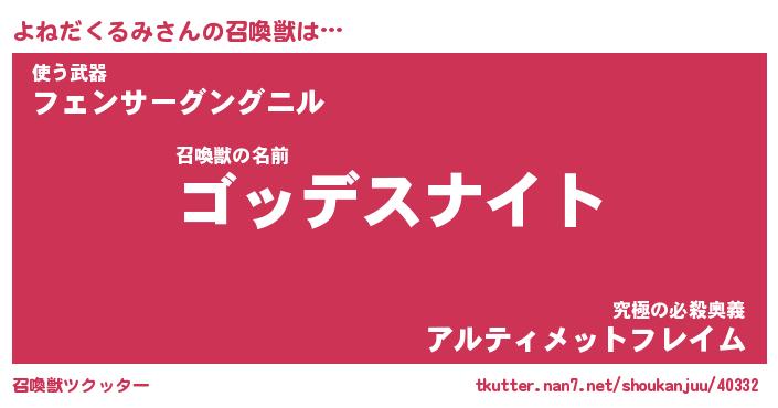 | ヒーロー風カッコイイあだ名 | 『スーパーヨネダクルミ』『魔戒騎士ヨネ』 |