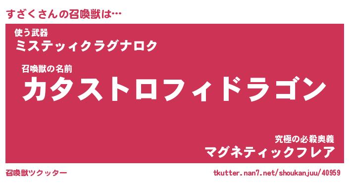 | 伝説のあだ名 | 『封印されし竜騎士すざく』 |