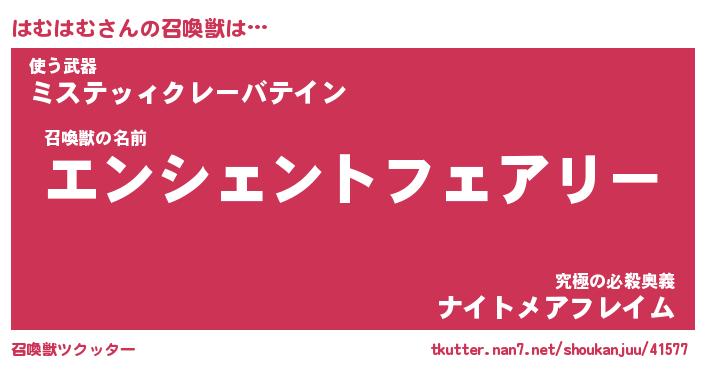 | ファンタジー風あだ名 | 『ハムフェル』『エターナルハムハムー』 |