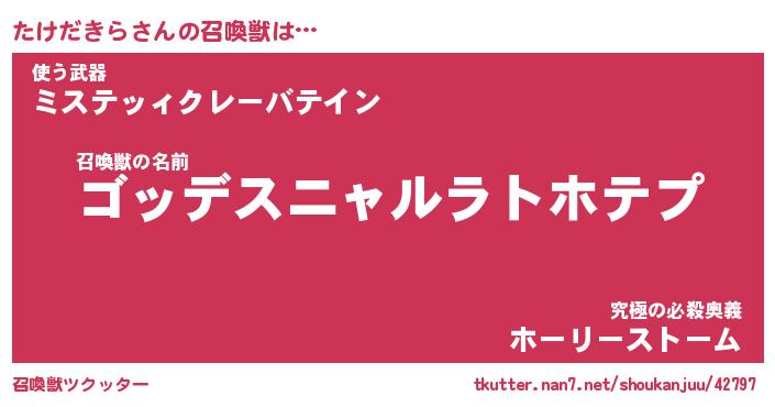 | ファンタジー風あだ名 | 『タケフェル』『エターナルタケダキラー』 |
