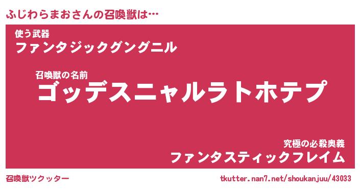 | ヒーロー風カッコイイあだ名 | 『スーパーフジワラマオ』『暗黒騎士フジ』 |