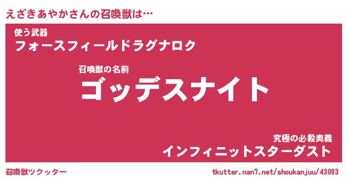 | ヒーロー風カッコイイあだ名 | 『スーパーエザキアヤカ』『幻影騎士エザ』 |