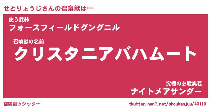 | ファンタジー風あだ名 | 『セトフェル』『ファントムセトス』 |