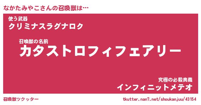 | ヒーロー風カッコイイあだ名 | 『スーパーナカタミヤコ』『幻影騎士ナカ』 |