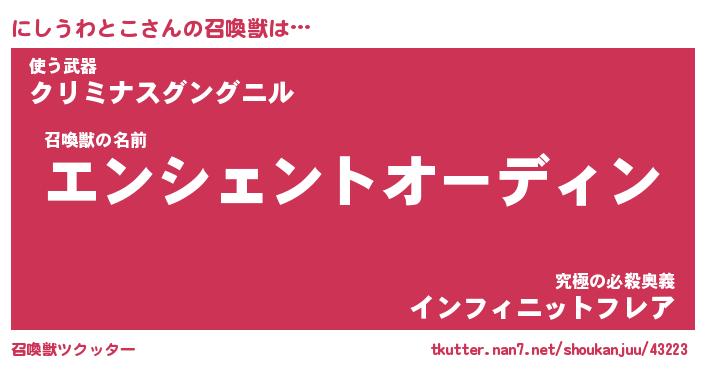 | ヒーロー風カッコイイあだ名 | 『スーパーニシウワトコ』『幻影騎士ニシ』 |