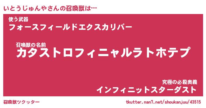 | 伝説のあだ名 | 『封印されしスナイパーいとうじゅんや』 |