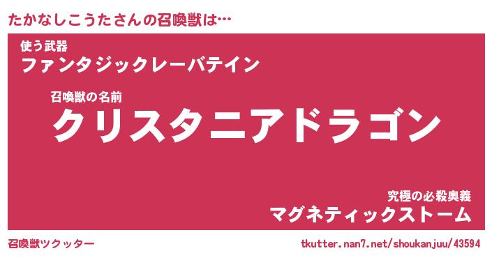 | 伝説のあだ名 | 『封印されし竜騎士たかなしこうた』 |