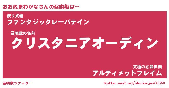 | ファンタジー風あだ名 | 『オオフェル』『ファントムオオス』 |