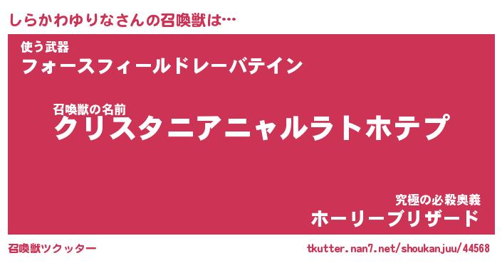 | 伝説のあだ名 | 『封印されしスナイパーしらかわゆりな』 |