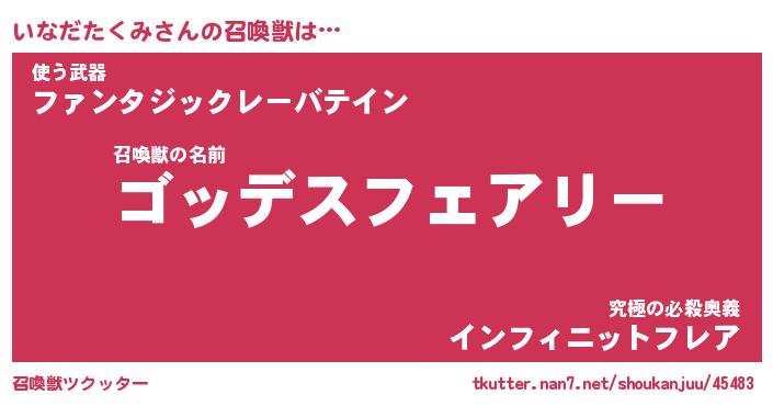 | 伝説のあだ名 | 『不死鳥の傭兵いなだたくみ』 |