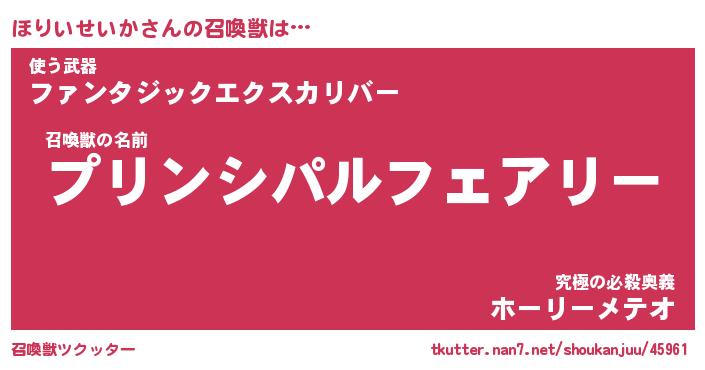 | 女子向けラノベタイトル風あだ名 | 『ほりいせいか姫と円卓の騎士』 |