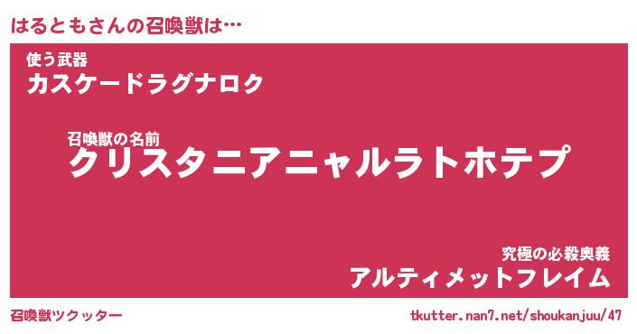 | ヒーロー風カッコイイあだ名 | 『スーパーハルトモ』『幻影騎士ハル』 |