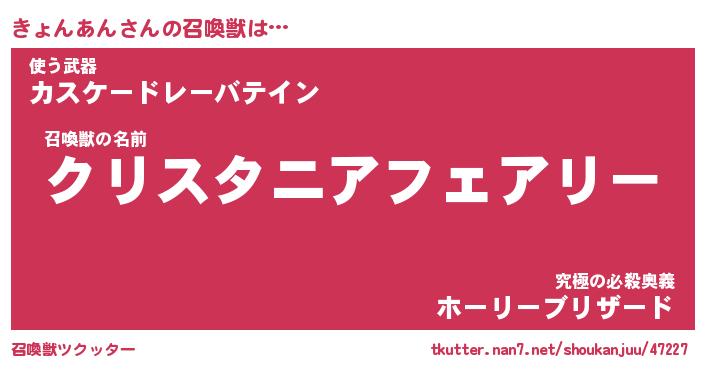 | ヒーロー風カッコイイあだ名 | 『スーパーキョンアン』『幻影騎士キョ』 |
