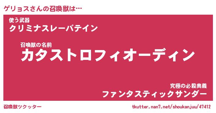 | ヒーロー風カッコイイあだ名 | 『スーパーゲリョス』『幻影騎士ゲリ』 |