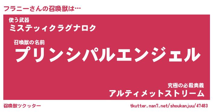 | 意味不明あだ名 | 『ペロリンフラニー』『永久保存フラニー』 |