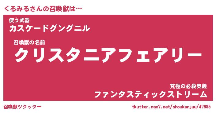 | ファンタジー風あだ名 | 『クルフェル』『エターナルクルミルー』 |