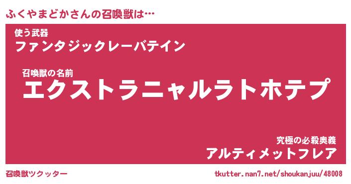 | ヒーロー風カッコイイあだ名 | 『スーパーフクヤマドカ』『魔戒騎士フク』 |