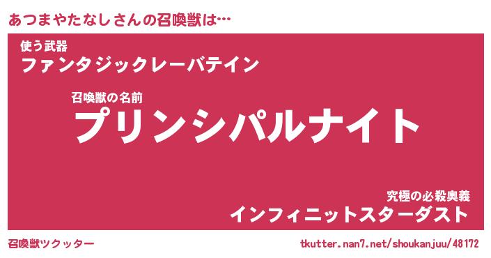 | 伝説のあだ名 | 『不死鳥のスナイパーあつまやたなし』 |