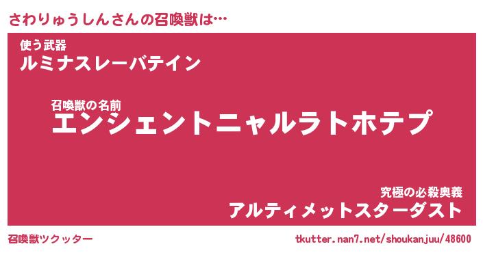 | 男性向けラノベタイトル風あだ名 | 『さわりゅうしんの憂鬱』 |