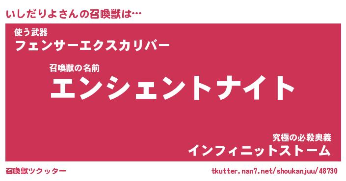 | ファンタジー風あだ名 | 『イシフェル』『エターナルイシダリヨー』 |