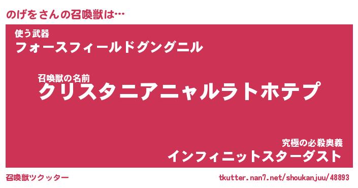 | 自動車の名前っぽいあだ名 | 『ノゲティマ』『ノクア』『ノント』 |