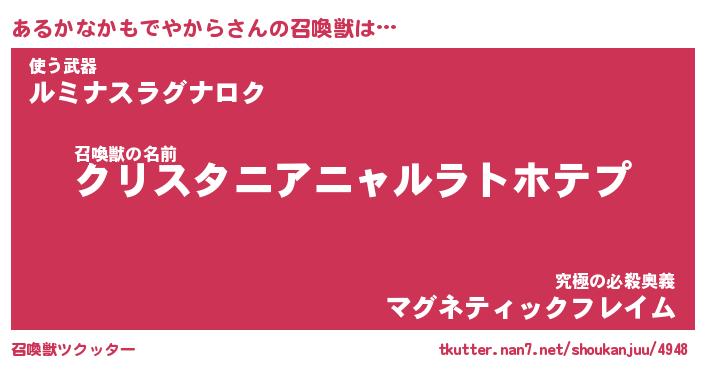 | ヒーロー風カッコイイあだ名 | 『スーパーアルカナカモデヤカラ』 |