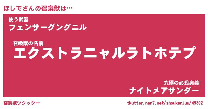 | ファンタジー風あだ名 | 『ホシフェル』『エターナルホシデー』 |