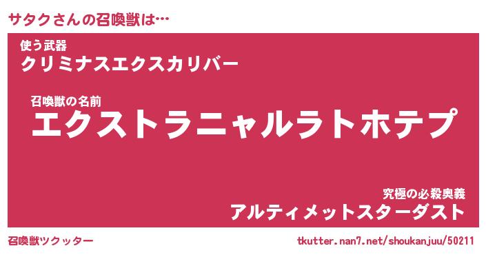 | ヒーロー風カッコイイあだ名 | 『スーパーサタク』『ウルトラサタクマン』 |