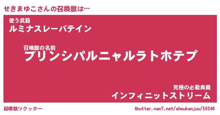| 肩書あだ名 | 『せきまゆこ御曹司』『せきまゆこ大統領』 |