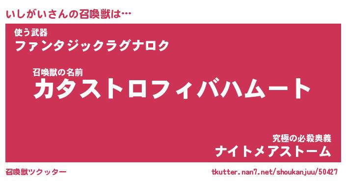 | ヒーロー風カッコイイあだ名 | 『スーパーイシガイ』『暗黒騎士イシ』 |