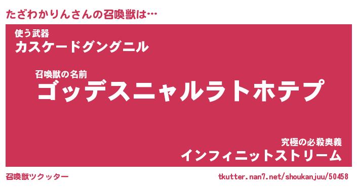 | 胡散臭い通販商品みたいなあだ名 | 『モテモテ間違いなし霊験あらたかなお札…その名も「たざわかりん」』 |
