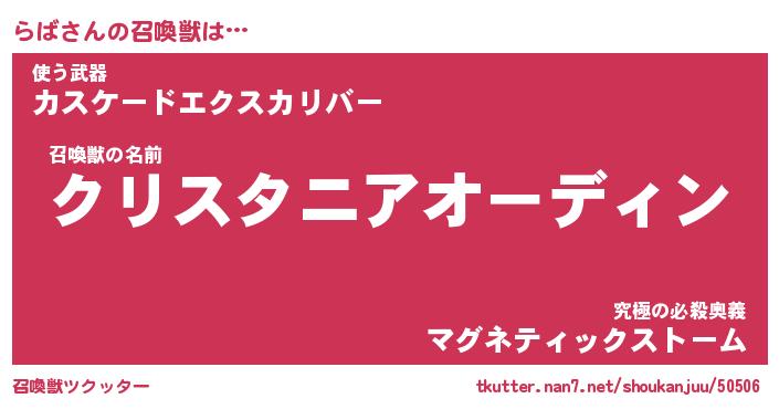 | 自動車の名前っぽいあだ名 | 『ラバティマ』『ラクア』『ラント』 |
