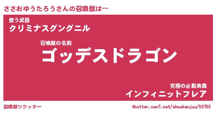 | 伝説のあだ名 | 『不死鳥の竜騎士ささおゆうたろう』 |