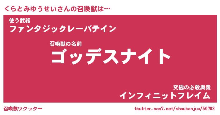 | 伝説のあだ名 | 『不死鳥のスナイパーくらとみゆうせい』 |