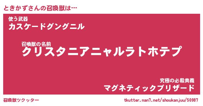| ファンタジー風あだ名 | 『トキフェル』『エターナルトキカズー』 |