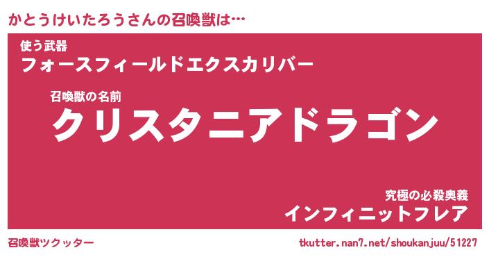 | 伝説のあだ名 | 『封印されし竜騎士かとうけいたろう』 |