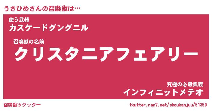 | ポケモン風あだ名 | 『ウサチュウ』『ウサヒダネ』 |