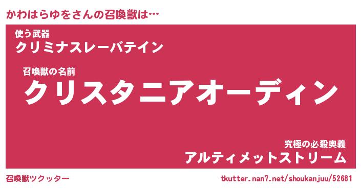 | ヒーロー風カッコイイあだ名 | 『スーパーカワハラユヲ』『魔戒騎士カワ』 |