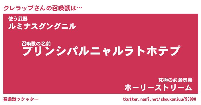| 男性向けラノベタイトル風あだ名 | 『クレラップの憂鬱』 |