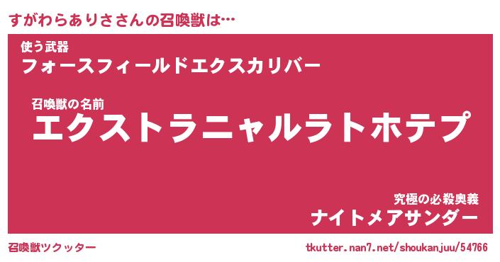 | 伝説のあだ名 | 『伝説のスナイパーすがわらありさ』 |
