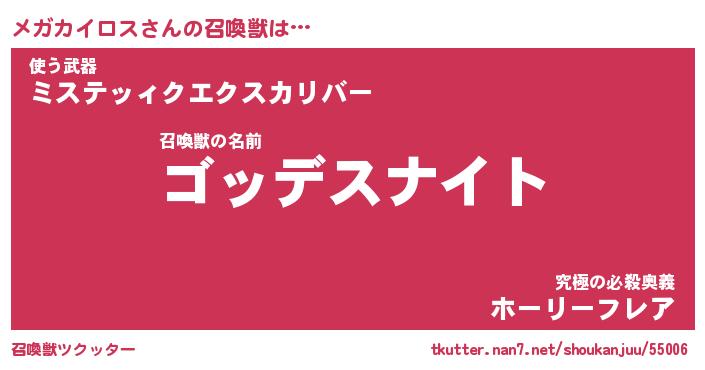 | 女子向けラノベタイトル風あだ名 | 『メガカイロス姫と円卓の騎士』 |