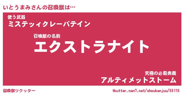 | ヒーロー風カッコイイあだ名 | 『スーパーイトウマミ』『魔戒騎士イト』 |