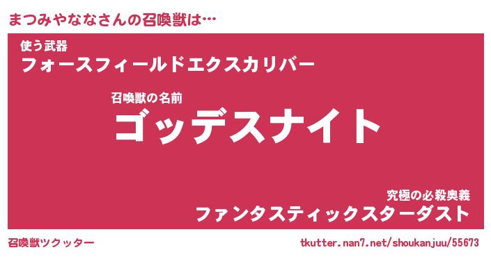 | ヒーロー風カッコイイあだ名 | 『スーパーマツミヤナナ』『天弓騎士マツ』 |