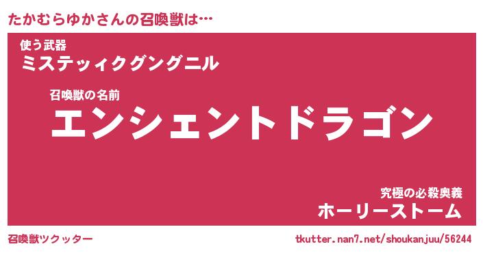 | ヒーロー風カッコイイあだ名 | 『スーパータカムラユカ』『天弓騎士タカ』 |