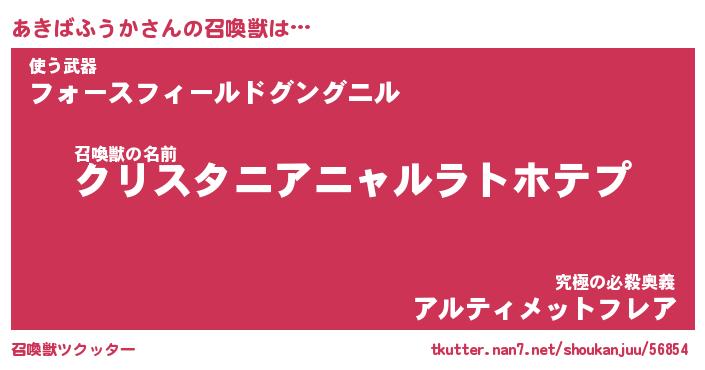 | 伝説のあだ名 | 『封印されしスナイパーあきばふうか』 |