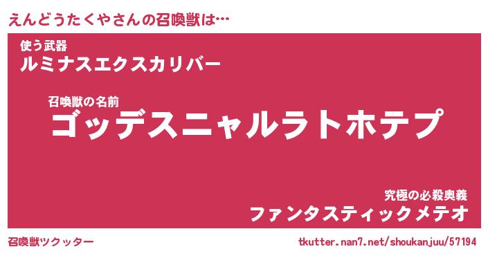 | 胡散臭い通販商品みたいなあだ名 | 『モテモテ間違いなし霊験あらたかなお札…その名も「えんどうたくや」』 |